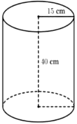 1) Một thùng đựng nước có dạng hình trụ với chiều cao là 40 cm và bán kính đáy là 15 cm (như hình vẽ bên).
