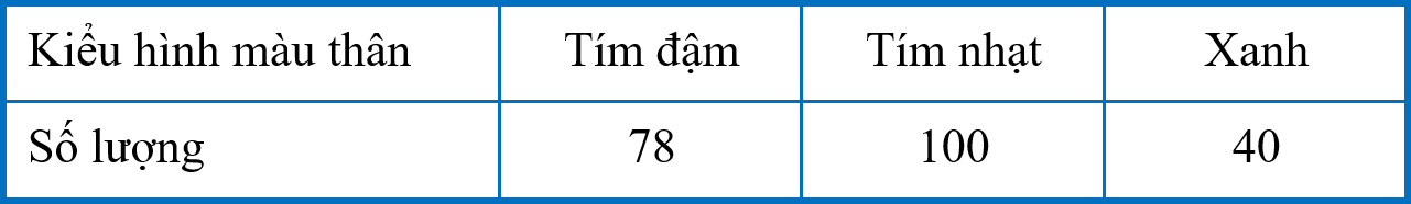 Một học sinh tiến hành gieo hạt cải và thống kê số lượng cây con với các kiểu hình khác nhau về màu thân sau 10 ngày gieo hạt, thu được kết quả ở bảng dưới đây.