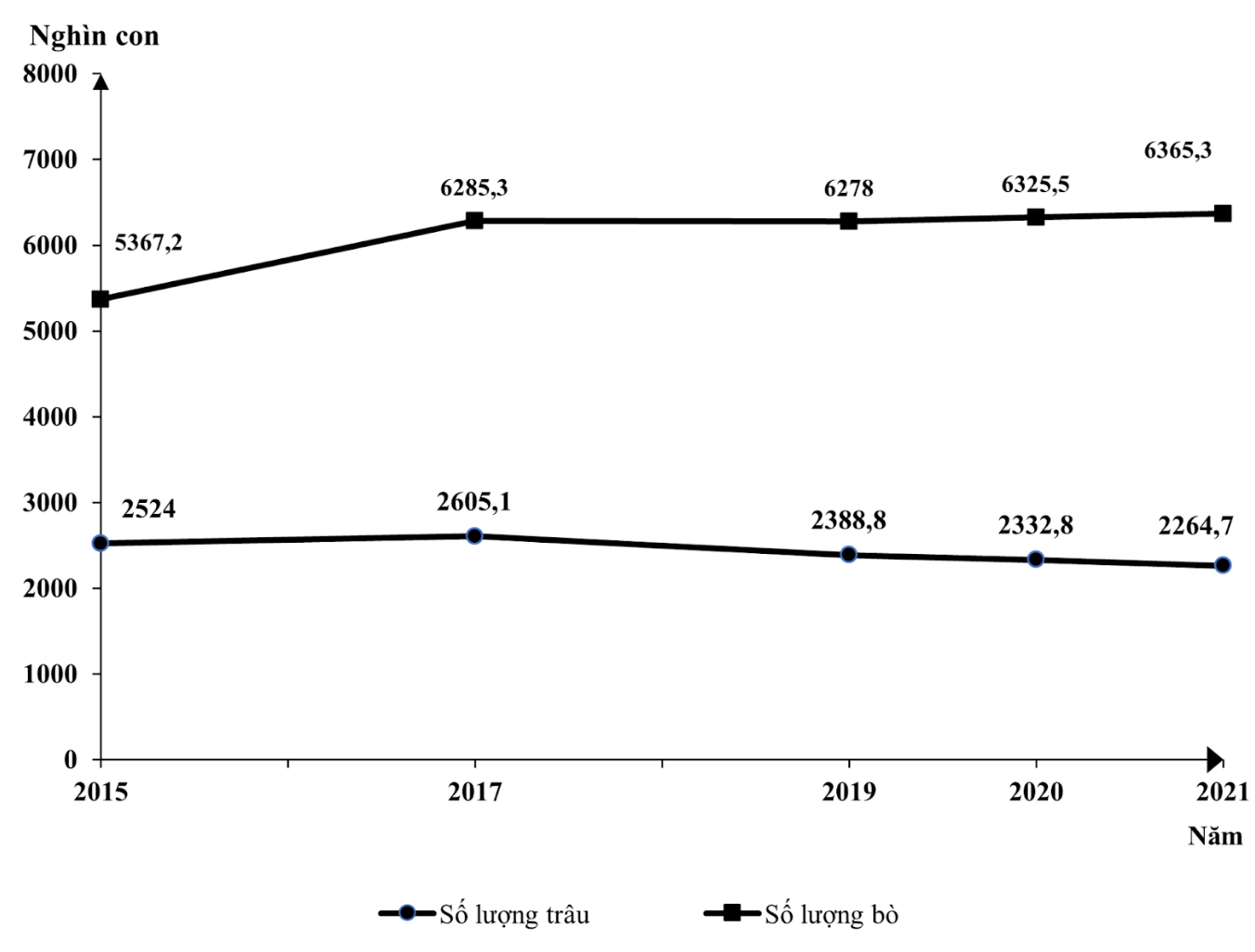 SỐ LƯỢNG TRÂU VÀ BÒ CỦA NƯỚC TA, GIAI ĐOẠN 2015 - 2021