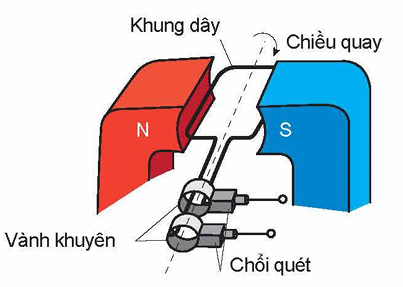 Hình bên là sơ đồ cấu tạo của một máy phát điện xoay chiều một pha: Khung dây dẫn phẳng