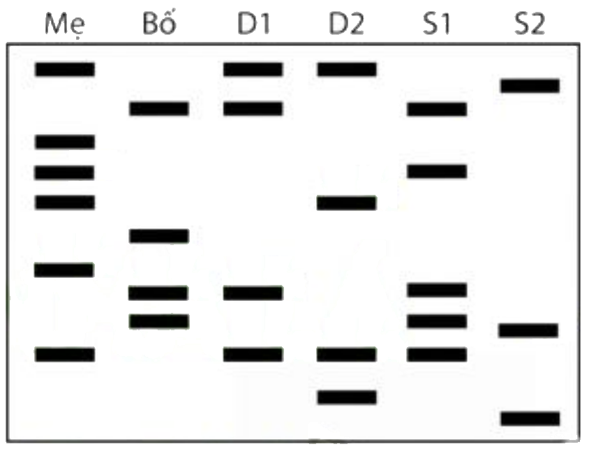 So sánh các băng DNA của từng con với mẹ và bố.