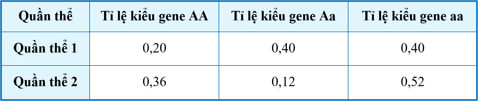 Ở một loài động vật ngẫu phối, xét một gene có hai allele, allele A trội hoàn toàn so với allele a. Biết 2 quần thể thuộc loài này có tỉ lệ các kiểu gene như sau: