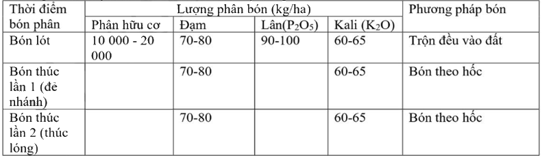 Quan sát bảng sau về lượng phân bón khuyến cáo cho cây mía trồng thâm canh lâu năm trên đất