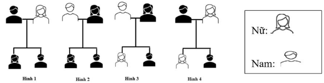 Sơ đồ sau mô tả một gene nằm trong ti thể gây ra chứng động kinh do một đột biến điểm. Biết rằng người màu trắng là bình thường, còn người tô đen mắc chứng động kinh. Theo lý thuyết, hình số mấy mô tả đúng sự di truyền về tính trạng bệnh này?
