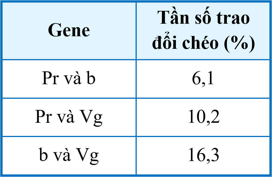 Nghiên cứu ở ruồi giấm, các nhà khoa học đã ghi nhận được tần số trao đổi chéo giữa 3 locus gene ở bảng dưới đây:
