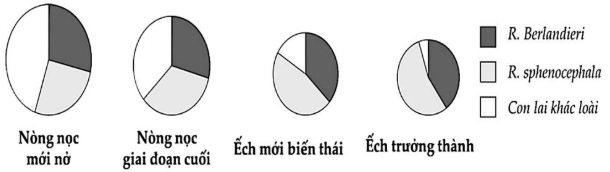 4. Theo thời gian trong ao nước này, tỉ lệ nòng nọc mới nở của con lai khác loài có xu hướng gia tăng để bù lại lượng mất đi.