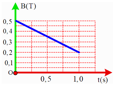 Một khung dây dẫn kín hình vuông có cạnh dài 10cm gồm 500 vòng được đặt trong từ trường đều sao vector cảm ứng từ vuông góc với bề mặt khung dây. Điện trở suất và tiết diện của dây kim loại có giá trị lần lượt là 2.10-8 Ωm và 0,4 mm2. Giá trị cảm ứng từ biến thiên theo thời gian có đồ thị như hình bên. Công suất tỏa nhiệt sinh ra trong khung dây có giá trị bao nhiêu?