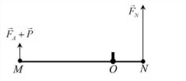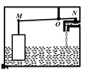 Hình bên mô phỏng hoạt động của một van mở (đóng) nước tự động để dẫn nước vào bình chứa. Bình chứa có dạng hình hộp chữ nhật, có diện tích đáy $S_{1}$ = 400 cm². Một thanh kim loại MN nhẹ, cứng; đầu $M$ của thanh gắn với một cái phao đặt thẳng đứng bằng thanh nhựa cứng; đầu $N$ gắn với một miếng kim loại được bọc cao su (gọi là van) để mở (đóng) nước chảy vào bình chứa; thanh MN có trục quay tại $O$ sao cho $OM = 3ON$. Phao có dạng hình trụ tròn, trọng lượng 12 N, diện tích đáy $S_{2}$ = 100 cm², chiều cao 20 cm. Khi bình chưa chứa nước, phần dưới của phao đặt cách đáy bình chứa một đoạn $x$ = 1 cm. Khi van chưa đóng, nước chảy vào đến lúc làm phao nổi lên, đẩy thanh cứng tác dụng vào van làm van đóng cho đến khi nước ngừng chảy. Trọng lượng riêng của nước $d$ = 10 000 N/m³. Biết rằng, khi lực ép lên van tại $N$ (theo phương thẳng đứng) đạt từ 8 N trở lên thì van bắt đầu đóng một phần, khi lực ép đạt đến 12 N thì van đóng hoàn toàn. Xem khối lượng, kích thước của thanh kim loại, thanh nhựa và của van là không đáng kể. Hãy tính: