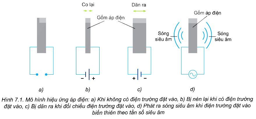 "Siêu âm được tạo ra bởi sự rung động nguồn âm. Thông thường siêu âm được tạo ra bằng một bộ biến đổi điện – cơ. Đây là một linh kiện có chức năng biến đổi các dao động điện thành dao động cơ cùng tần số. Bộ biến đổi điện – cơ thường được làm bằng thạch anh hoặc gốm áp điện. Những vật liệu này có tính chất đặc biệt là bị co dãn khi có điện trường đặt vào. Nếu đặt một xung điện vào các vật liệu trên thì độ biến dạng của chúng sẽ thay đổi theo tần số xung, nghĩa là chúng đã tạo ra các dao động cơ học. Nếu tần số của xung điện nằm trong dải tần số của sóng siêu âm thì các dao động cơ cũng có tần số này và tạo ra sóng siêu âm.
