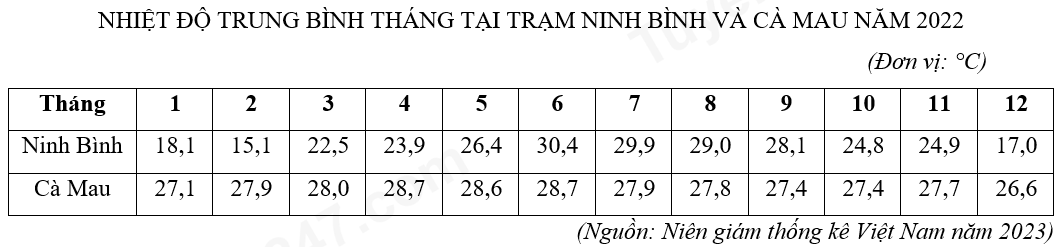 Biên độ nhiệt năm = Nhiệt độ tháng cao nhất - Nhiệt độ tháng thấp nhất