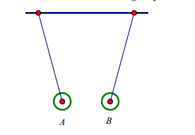 Hai quả cầu A và B được đặt gần nhau bằng hai sợi chỉ, chúng hút nhau làm cho phương của hai
