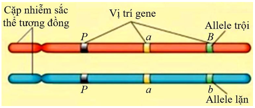 Quan sát sơ đồ cặp nhiễm sắc thể tương đồng, xác định số locus và sự sắp xếp allele trên mỗi nhiễm sắc thể.