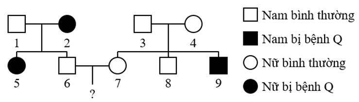 Theo dõi sự di truyền bệnh Q trên những người thuộc một dòng họ, người ta vẽ được sơ đồ phả hệ sau: