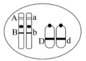 Trong một tế bào sinh vật lưỡng bội, xét 3 gene, mỗi gene có 2 allele nằm trên mỗi cặp nhiễm sắc thể thường như mô tả ở hình bên.