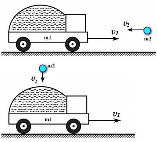 | c) Nếu hòn đá bay ngang, ngược chiều chuyển động của xe với tốc độ $v_{2} = 12m/s$ thì tốc độ của xe sau khi hòn đá rơi vào xe là 7,8 m/s. | ||