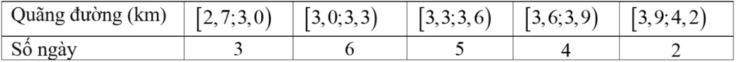 Mỗi ngày bác An đều đi bộ để rèn luyện sức khỏe. Quãng đường đi bộ mỗi ngày của bác An trong 20 ngày được thống kê ở bảng sau: