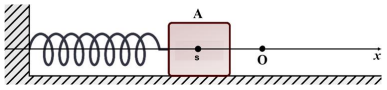 Trong hình vẽ sau đây, khi kéo ra khỏi vị trí cân bằng ở điểm O và buông tay, lực đàn hồi của lò xo khiến vật A gắn ở đầu của lò xo dao động quanh O. Tọa độ s (centimét) của A trên trục Ox vào thời điểm t (giây) sau khi buông tay được xác định bởi công thức $s = 10\sin\left( {10t - \dfrac{\pi}{2}} \right)$.
