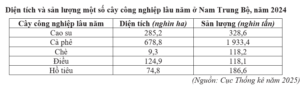 Cho bảng số liệu: Căn cứ vào bảng số liệu trên, hãy cho biết năm 2024 ở Nam Trung