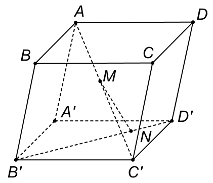 Cho hình hộp ABCD.A'B'C'D' có tất cả các cạnh bằng 12 và $\widehat{A^{\prime}AB} = 60^{{^\circ}}$. Giả sử điểm M thuộc đoạn thẳng AC', có ảnh qua phép chiếu song song lên mặt phẳng (A'B'C'D') theo phương chiếu BA' là điểm N thuộc đoạn thẳng B'D'. Độ dài đoạn thẳng MN bằng bao nhiêu?