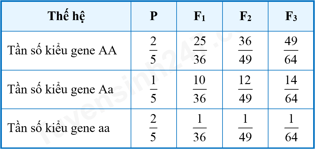 Cho rằng quần thể này không chịu tác động của nhân tố đột biến, dị - nhập gene và các yếu tố ngẫu nhiên.