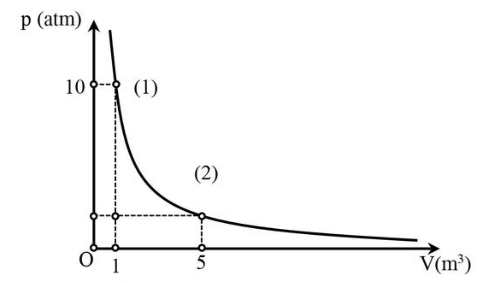 Quá trình biến đổi đẳng nhiệt của một lượng khí lí tưởng xác định được biểu diễn bằng đồ thị như hình vẽ.