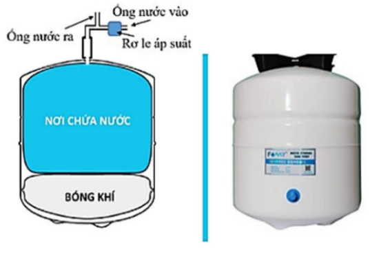Một bình tích áp được sử dụng trong máy lọc nước gồm khoang bóng chứa nước và khoang bóng