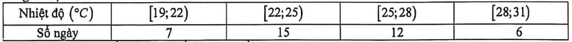 Một học sinh tiến thành thống kê nhiệt độ trung bình tại nơi mình sống trong vòng 40 ngày và thu được bảng số liệu sau: