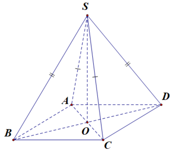 Cho hình chóp S.ABCD có đáy ABCD là hình thoi tâm O, SA = SC, SB = SD. Trong các khẳng định sau khẳng