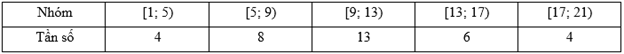 Một mẫu số liệu có bảng tần số ghép nhóm như sau: