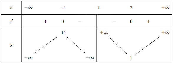 | d) Hàm số nghịch biến trên khoảng $( - 4; - 1)$ và $( - 1;2)$. |