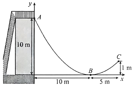 Bạn Việt bắt đầu trượt từ điểm A, hỏi khi bạn Việt cách vị trí ban đầu theo phương ngang một khoảng 6 mét thì bạn Việt cách mặt đất bao nhiêu mét, biết trục Ox nằm trên mặt đất.