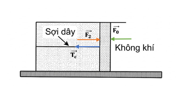 Khi tăng nhiệt độ của khối khí lên đến $57,0^{0}C$, lực căng của sợi dây bằng bao nhiêu Niutơn (N)?