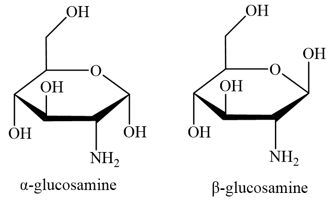 β-glucosamine là một amino monosaccharide có nhiều trong các mô liên kết và mô sụn. Công thức của glucosamine (dạng a và B) như hình bên. Một số muối của glucosamine như glucosamine sulfate hoặc glucosamine hydrochloride được sử dụng nhiều trong chữa trị các bệnh xương khớp. Glucosamine hydrochloride được điều chế từ vỏ tôm khô (chứa chitin) qua các giai đoạn chính: