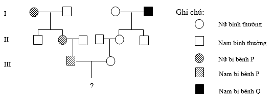 Cho sơ đồ phả hệ sau: Bệnh P được quy định bởi gen trội nằm trên NST thường; bệnh Q