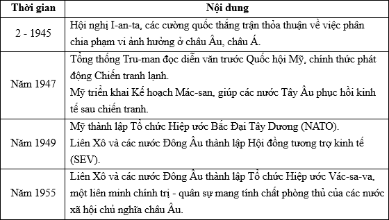 | c) Sự thành lập NATO và Vác-sa-va khiến cục diện Chiến tranh lạnh bao trùm thế giới. | ||