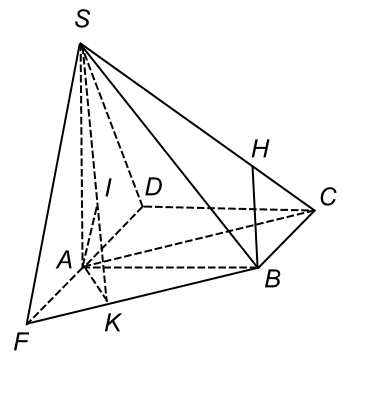 e) Trong mặt phẳng đáy (ABC), qua B kẻ đường thẳng BF song song với AC cắt AD tại F. Kẻ $AK\bot BF$ tại K và $AI\bot SK$ tại I. Khi đó $d(AC,SB) = AI$