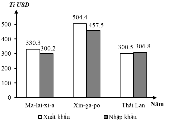 Cho biểu đồ sau:Trị giá xuất khẩu, nhập khẩu hàng hóa của một số quốc gia Đông Nam Á năm
