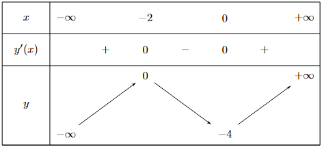 | c) Hàm số đã cho đạt cực đại tại $x = - 2$. | ||