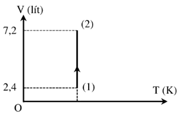 Một khối khí lí tưởng thực hiện quá trình được biểu diễn trên đồ thị. Biết áp suất của khối khí ở cuối quá trình là 3,6 atm.