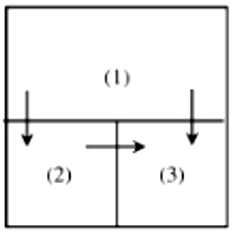 Trong một bình cao có tiết diện thẳng là hình vuông, được chia làm ba ngăn như hình vẽ. Hai ngăn nhỏ có tiết diện thẳng cũng là một hình vuông có cạnh bằng nửa cạnh của bình. Đổ chất lỏng vào các ngăn đến cùng một độ cao: ngăn (1) là chất lỏng ở nhiệt độ $t_{1} = 65^{0}C$, ngăn (2) là chất lỏng ở nhiệt độ $t_{2} = 35^{0}C$, ngăn (3) là chất lỏng ở nhiệt độ $t_{3} = 20^{0}C$. Biết rằng thành bình cách nhiệt rất tốt, nhưng các vách ngăn có cách nhiệt không tốt lắm, nhiệt lượng truyền qua các vách ngăn trong một đơn vị thời gian tỉ lệ với diện tích tiếp xúc của chất lỏng và với hiệu nhiệt độ ở hai bên vách ngăn. Xem rằng về phương diện nhiệt thì cả ba chất lỏng nói trên là giống nhau. Bỏ qua sự trao đổi nhiệt với bình và với môi trường. Sau một thời gian thì nhiệt độ ngăn (1) giảm $\Delta t_{1} = 1^{0}C$, nhiệt độ ngăn (2) và ngăn (3) thay đổi một lượng $\Delta t_{2},\Delta t_{3}$. Tính tỉ số $\dfrac{\Delta t_{3}}{\Delta t_{2}}$.