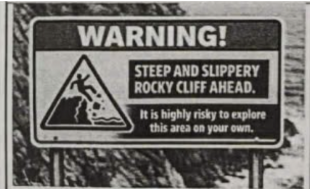 STEEP AND SLIPPERY ROCKY CLIFF AHEAD.