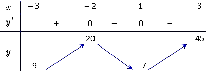 Cho hàm số $y = f(x)$liên tục trên đoạn $\left\lbrack {- 3;3} \right\rbrack$ có bảng biến thiên như hình vẽ