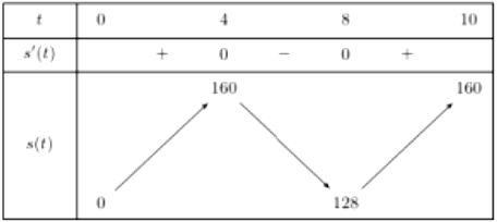 Trên một trục số thẳng đứng có chiều dương hướng lên trên, một chất điểm bắt đầu chuyển động dọc theo trục số. Giả sử, tại thời điểm t giây $\left( {t \geq 0} \right)$ tính từ lúc bắt đầu chuyển động thì vị trí $s(t)$ của chất điểm trên trục số thẳng đứng được xác định bởi công thức $s(t) = t^{3} - 18t^{2} + 96t$ (mét). Trong 10 giây chuyển động đầu tiên thì chất điểm di chuyển được quãng đường bằng bao nhiêu mét?