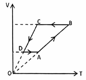 Một khối khí lí tưởng biến đổi trạng thái được biểu diễn trong đồ thị V-T như hình