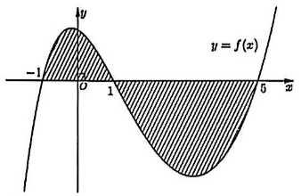 Cho hàm số y = f(x) liên tục trên $\mathbb{R}$. Gọi S là diện tích hình phẳng giới hạn bởi các đường y = f(x), y = 0, x = -1 và x = 5 (như hình vẽ bên). Mệnh đề nào sau đây đúng?