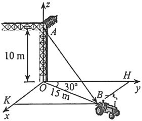 Một chiếc xe đang kéo căng sợi dây cáp AB trong công trường xây dựng, trên đó đã thiết lập hệ toạ độ Oxyz như Hình với độ dài đơn vị trên các trục tọa độ bằng 1 m. Tìm được tọa độ của vectơ $\overset{\rightarrow}{AB} = (a;b;c)$, khi đó $a + c$ bằng bao nhiêu?
