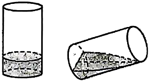 Có một cốc thủy tinh hình trụ, bán kính trong lòng đáy cốc là 6 cm, chiều cao trong lòng cốc là 10 cm đang đựng một lượng nước. Tính thể tích (đơn vị $cm^{3}$) lượng nước trong cốc, biết khi nghiêng cốc nước vừa lúc khi nước chạm miệng cốc thì ở đáy mực nước trùng với đường kính đáy.
