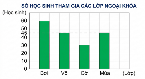 Biểu đồ dưới đây cho biết số học sinh tham gia các lớp ngoại khoá của một trường tiểu học.
