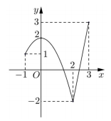 Cho hàm số $y = f(x)$ liên tục trên đoạn $\left\lbrack {- 1;3} \right\rbrack$ và có đồ thị như hình