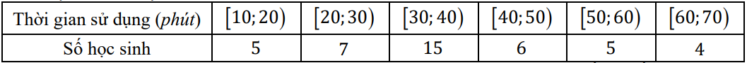 Khảo sát thời gian sử dụng mạng xã hội trong một ngày của học sinh trong lớp 12X người ta thu được mẫu số liệu như sau: